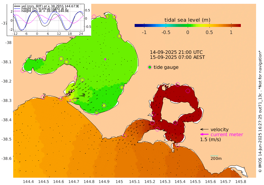 124cm San Remo 131cm Elizabeth Island 155cm Bouchier Channel 154cm Tooradin 115cm Cowes Jetty 121cm Western Port (Stony Point) 153cm Western Port (Sandy Point) 75cm Flinders Jetty 20cm Mornington 23cm Sandringham 18cm Rosebud Jetty 19cm Hovell Pile 26cm South Channel 39cm Point Lonsdale 27cm Queenscliff 21cm West Channel Pile 45cm Barwon Heads 22cm St Leonards 25cm Point Richards (Corio Bay) 24cm Point Richards Channel 26cm Geelong 17cm Werribee 24cm Altona 25cm Wilson Spit 22cm Melbourne (Williamstown) 24cm St Kilda