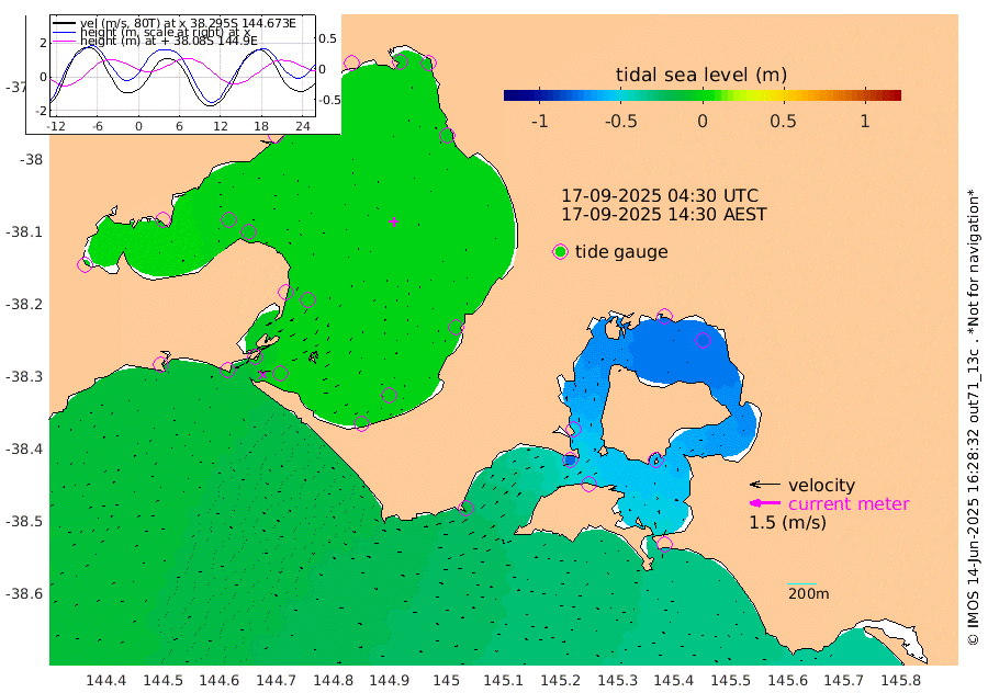 -54cm San Remo -58cm Elizabeth Island -76cm Bouchier Channel -79cm Tooradin -44cm Cowes Jetty -51cm Western Port (Stony Point) -76cm Western Port (Sandy Point) -17cm Flinders Jetty -3cm Mornington -4cm Sandringham -2cm Rosebud Jetty -3cm Hovell Pile -1cm South Channel -2cm Point Lonsdale 1cm Queenscliff -3cm West Channel Pile -10cm Barwon Heads -4cm St Leonards -6cm Point Richards (Corio Bay) -6cm Point Richards Channel -7cm Geelong -3cm Werribee -5cm Altona -7cm Wilson Spit -5cm Melbourne (Williamstown) -5cm St Kilda