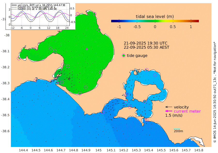 -65cm San Remo -55cm Elizabeth Island -58cm Bouchier Channel -46cm Tooradin -61cm Cowes Jetty -64cm Western Port (Stony Point) -51cm Western Port (Sandy Point) -65cm Flinders Jetty 1cm Mornington 1cm Sandringham 0cm Rosebud Jetty -1cm Hovell Pile -17cm South Channel -40cm Point Lonsdale -23cm Queenscliff -1cm West Channel Pile -54cm Barwon Heads 0cm St Leonards 0cm Point Richards (Corio Bay) 0cm Point Richards Channel 2cm Geelong 0cm Werribee 0cm Altona 1cm Wilson Spit 0cm Melbourne (Williamstown) 0cm St Kilda