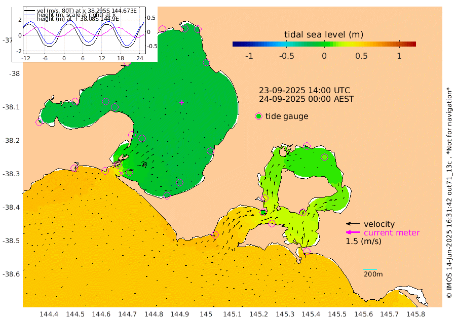 39cm San Remo 22cm Elizabeth Island 12cm Bouchier Channel -1cm Tooradin 38cm Cowes Jetty 37cm Western Port (Stony Point) 6cm Western Port (Sandy Point) 60cm Flinders Jetty -18cm Mornington -18cm Sandringham -16cm Rosebud Jetty -14cm Hovell Pile 8cm South Channel 37cm Point Lonsdale 16cm Queenscliff -14cm West Channel Pile 53cm Barwon Heads -16cm St Leonards -18cm Point Richards (Corio Bay) -18cm Point Richards Channel -20cm Geelong -15cm Werribee -17cm Altona -20cm Wilson Spit -17cm Melbourne (Williamstown) -18cm St Kilda