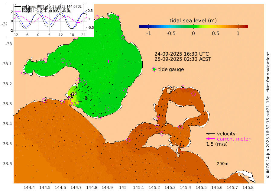 100cm San Remo 87cm Elizabeth Island 94cm Bouchier Channel 84cm Tooradin 98cm Cowes Jetty 96cm Western Port (Stony Point) 87cm Western Port (Sandy Point) 91cm Flinders Jetty 1cm Mornington 2cm Sandringham 1cm Rosebud Jetty 3cm Hovell Pile 24cm South Channel 54cm Point Lonsdale 31cm Queenscliff 4cm West Channel Pile 67cm Barwon Heads 4cm St Leonards 4cm Point Richards (Corio Bay) 4cm Point Richards Channel 3cm Geelong 4cm Werribee 4cm Altona 2cm Wilson Spit 3cm Melbourne (Williamstown) 4cm St Kilda