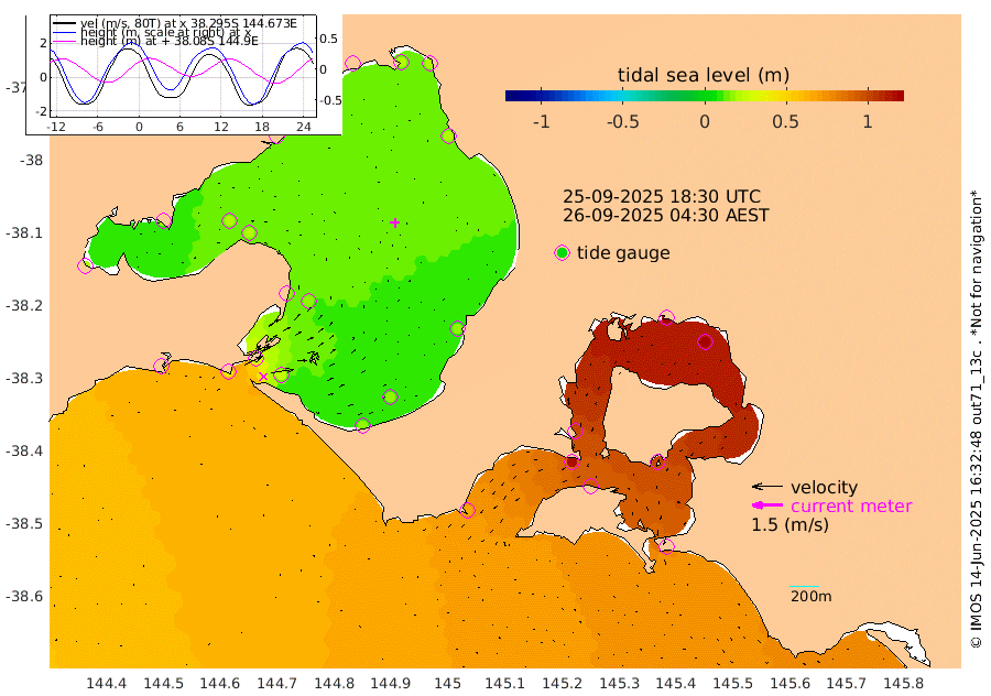 100cm San Remo 99cm Elizabeth Island 119cm Bouchier Channel 118cm Tooradin 97cm Cowes Jetty 98cm Western Port (Stony Point) 114cm Western Port (Sandy Point) 67cm Flinders Jetty 16cm Mornington 19cm Sandringham 15cm Rosebud Jetty 17cm Hovell Pile 25cm South Channel 38cm Point Lonsdale 26cm Queenscliff 19cm West Channel Pile 42cm Barwon Heads 18cm St Leonards 22cm Point Richards (Corio Bay) 21cm Point Richards Channel 22cm Geelong 20cm Werribee 20cm Altona 21cm Wilson Spit 20cm Melbourne (Williamstown) 21cm St Kilda