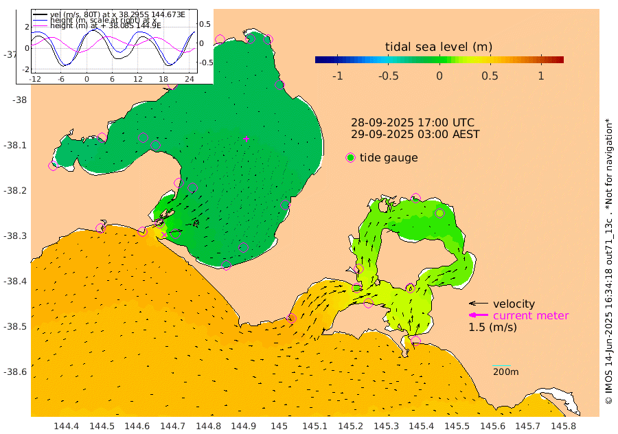 50cm San Remo 32cm Elizabeth Island 16cm Bouchier Channel 2cm Tooradin 53cm Cowes Jetty 45cm Western Port (Stony Point) 11cm Western Port (Sandy Point) 77cm Flinders Jetty -26cm Mornington -25cm Sandringham -24cm Rosebud Jetty -24cm Hovell Pile 4cm South Channel 42cm Point Lonsdale 14cm Queenscliff -23cm West Channel Pile 62cm Barwon Heads -22cm St Leonards -27cm Point Richards (Corio Bay) -25cm Point Richards Channel -31cm Geelong -27cm Werribee -25cm Altona -27cm Wilson Spit -27cm Melbourne (Williamstown) -27cm St Kilda