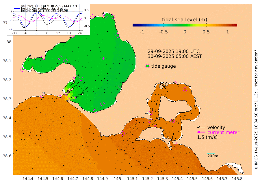101cm San Remo 91cm Elizabeth Island 92cm Bouchier Channel 82cm Tooradin 98cm Cowes Jetty 97cm Western Port (Stony Point) 87cm Western Port (Sandy Point) 95cm Flinders Jetty -8cm Mornington -6cm Sandringham -8cm Rosebud Jetty -7cm Hovell Pile 17cm South Channel 51cm Point Lonsdale 25cm Queenscliff -6cm West Channel Pile 69cm Barwon Heads -4cm St Leonards -7cm Point Richards (Corio Bay) -5cm Point Richards Channel -9cm Geelong -10cm Werribee -5cm Altona -6cm Wilson Spit -8cm Melbourne (Williamstown) -7cm St Kilda