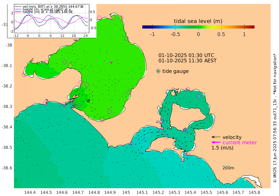 -47cm San Remo -43cm Elizabeth Island -39cm Bouchier Channel -36cm Tooradin -46cm Cowes Jetty -44cm Western Port (Stony Point) -38cm Western Port (Sandy Point) -43cm Flinders Jetty 11cm Mornington 11cm Sandringham 12cm Rosebud Jetty 11cm Hovell Pile -1cm South Channel -18cm Point Lonsdale -5cm Queenscliff 11cm West Channel Pile -31cm Barwon Heads 9cm St Leonards 12cm Point Richards (Corio Bay) 10cm Point Richards Channel 13cm Geelong 12cm Werribee 11cm Altona 11cm Wilson Spit 12cm Melbourne (Williamstown) 11cm St Kilda