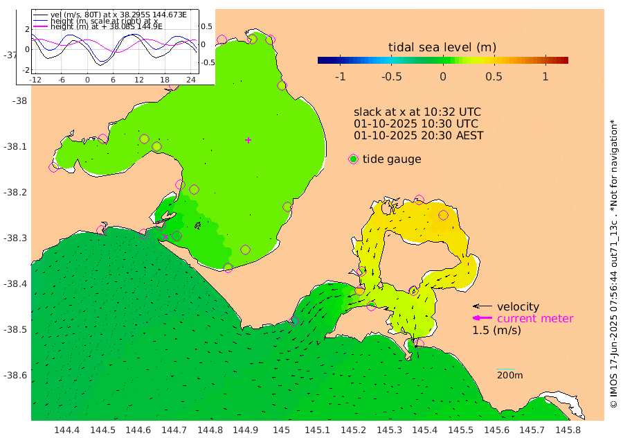 15cm San Remo 26cm Elizabeth Island 46cm Bouchier Channel 56cm Tooradin 5cm Cowes Jetty 15cm Western Port (Stony Point) 50cm Western Port (Sandy Point) -27cm Flinders Jetty 18cm Mornington 19cm Sandringham 16cm Rosebud Jetty 18cm Hovell Pile 2cm South Channel -18cm Point Lonsdale -4cm Queenscliff 18cm West Channel Pile -22cm Barwon Heads 17cm St Leonards 22cm Point Richards (Corio Bay) 20cm Point Richards Channel 24cm Geelong 19cm Werribee 19cm Altona 21cm Wilson Spit 21cm Melbourne (Williamstown) 21cm St Kilda