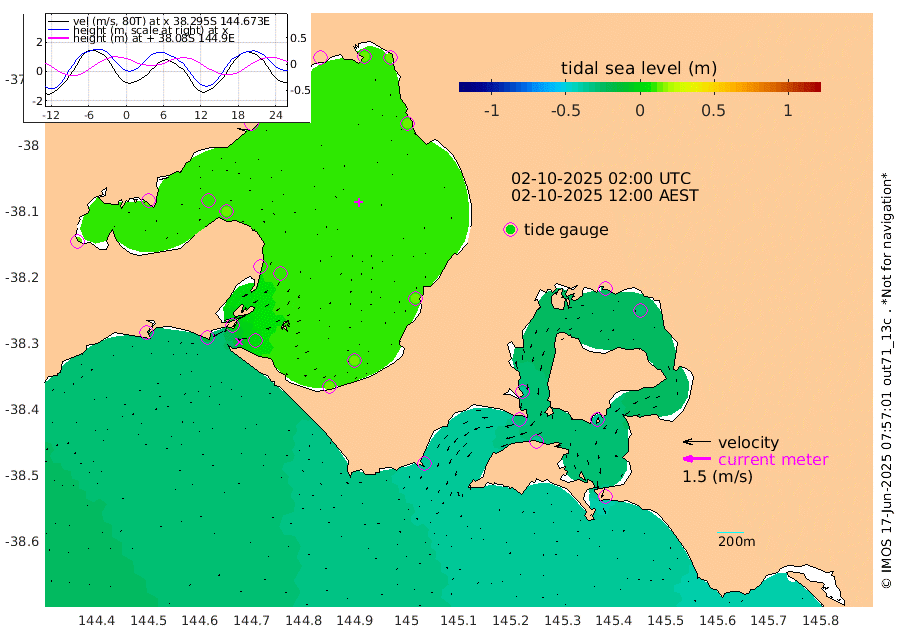 -37cm San Remo -34cm Elizabeth Island -28cm Bouchier Channel -25cm Tooradin -37cm Cowes Jetty -35cm Western Port (Stony Point) -28cm Western Port (Sandy Point) -36cm Flinders Jetty 12cm Mornington 12cm Sandringham 12cm Rosebud Jetty 11cm Hovell Pile 1cm South Channel -14cm Point Lonsdale -3cm Queenscliff 11cm West Channel Pile -26cm Barwon Heads 10cm St Leonards 13cm Point Richards (Corio Bay) 11cm Point Richards Channel 14cm Geelong 12cm Werribee 12cm Altona 12cm Wilson Spit 13cm Melbourne (Williamstown) 12cm St Kilda