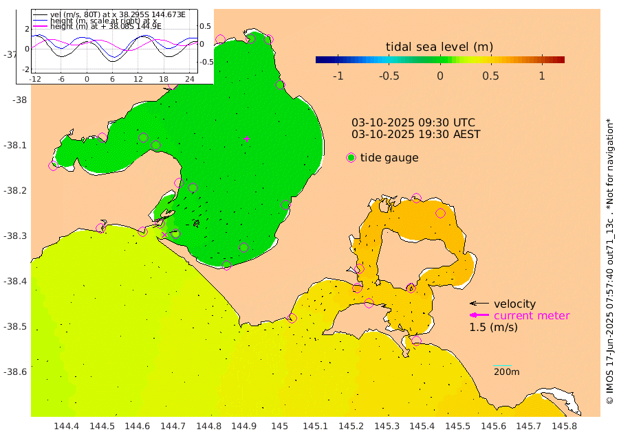 59cm San Remo 61cm Elizabeth Island 58cm Bouchier Channel 55cm Tooradin 51cm Cowes Jetty 56cm Western Port (Stony Point) 61cm Western Port (Sandy Point) 43cm Flinders Jetty 7cm Mornington 8cm Sandringham 9cm Rosebud Jetty 8cm Hovell Pile 15cm South Channel 22cm Point Lonsdale 17cm Queenscliff 9cm West Channel Pile 27cm Barwon Heads 8cm St Leonards 9cm Point Richards (Corio Bay) 8cm Point Richards Channel 8cm Geelong 5cm Werribee 8cm Altona 7cm Wilson Spit 8cm Melbourne (Williamstown) 8cm St Kilda