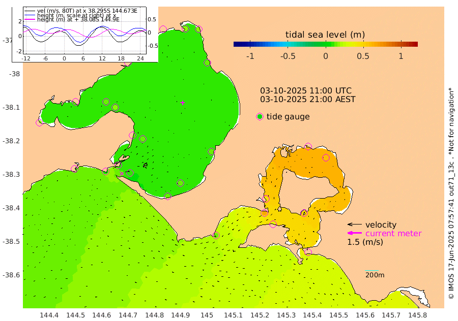 46cm San Remo 50cm Elizabeth Island 59cm Bouchier Channel 61cm Tooradin 33cm Cowes Jetty 42cm Western Port (Stony Point) 65cm Western Port (Sandy Point) 12cm Flinders Jetty 12cm Mornington 14cm Sandringham 13cm Rosebud Jetty 14cm Hovell Pile 11cm South Channel 6cm Point Lonsdale 9cm Queenscliff 14cm West Channel Pile 8cm Barwon Heads 13cm St Leonards 16cm Point Richards (Corio Bay) 15cm Point Richards Channel 17cm Geelong 11cm Werribee 14cm Altona 15cm Wilson Spit 15cm Melbourne (Williamstown) 16cm St Kilda