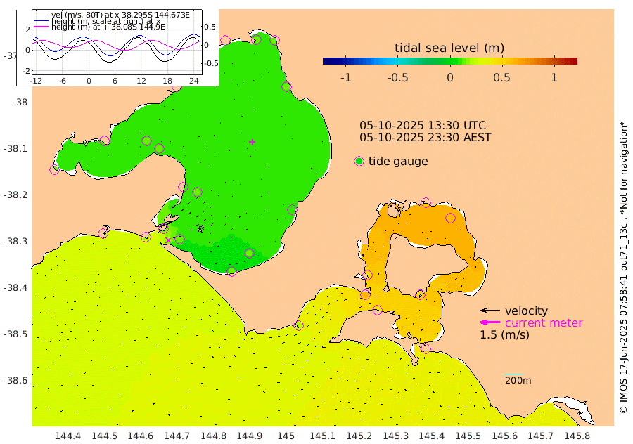 51cm San Remo 49cm Elizabeth Island 57cm Bouchier Channel 55cm Tooradin 38cm Cowes Jetty 44cm Western Port (Stony Point) 64cm Western Port (Sandy Point) 22cm Flinders Jetty 10cm Mornington 12cm Sandringham 12cm Rosebud Jetty 12cm Hovell Pile 13cm South Channel 15cm Point Lonsdale 13cm Queenscliff 13cm West Channel Pile 18cm Barwon Heads 11cm St Leonards 14cm Point Richards (Corio Bay) 13cm Point Richards Channel 15cm Geelong 9cm Werribee 13cm Altona 13cm Wilson Spit 14cm Melbourne (Williamstown) 14cm St Kilda