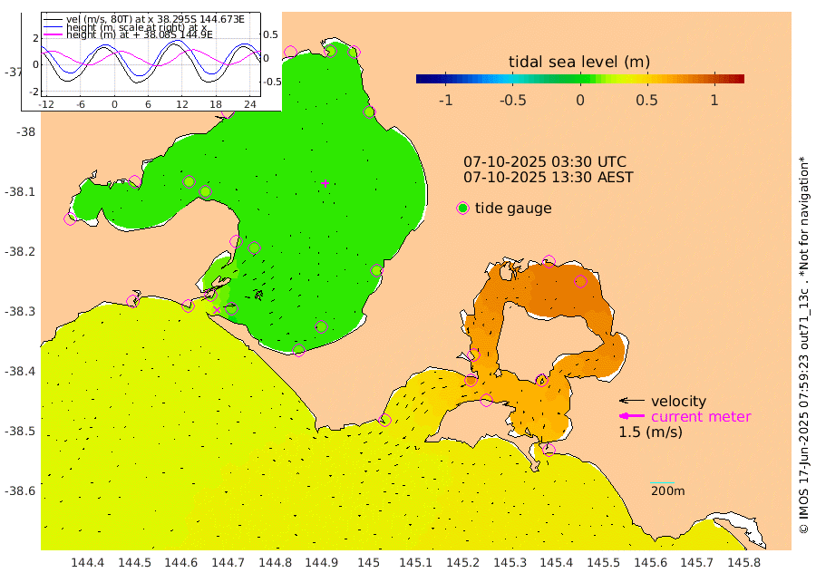 58cm San Remo 58cm Elizabeth Island 77cm Bouchier Channel 73cm Tooradin 51cm Cowes Jetty 54cm Western Port (Stony Point) 75cm Western Port (Sandy Point) 25cm Flinders Jetty 15cm Mornington 15cm Sandringham 13cm Rosebud Jetty 14cm Hovell Pile 13cm South Channel 17cm Point Lonsdale 13cm Queenscliff 15cm West Channel Pile 19cm Barwon Heads 15cm St Leonards 18cm Point Richards (Corio Bay) 18cm Point Richards Channel 18cm Geelong 12cm Werribee 17cm Altona 19cm Wilson Spit 16cm Melbourne (Williamstown) 17cm St Kilda