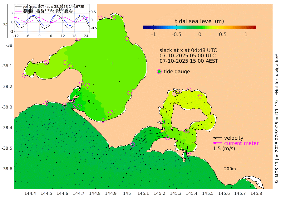 7cm San Remo 14cm Elizabeth Island 37cm Bouchier Channel 42cm Tooradin 6cm Cowes Jetty 7cm Western Port (Stony Point) 35cm Western Port (Sandy Point) -24cm Flinders Jetty 18cm Mornington 19cm Sandringham 14cm Rosebud Jetty 15cm Hovell Pile 2cm South Channel -13cm Point Lonsdale -4cm Queenscliff 16cm West Channel Pile -20cm Barwon Heads 16cm St Leonards 20cm Point Richards (Corio Bay) 20cm Point Richards Channel 22cm Geelong 16cm Werribee 20cm Altona 21cm Wilson Spit 18cm Melbourne (Williamstown) 19cm St Kilda