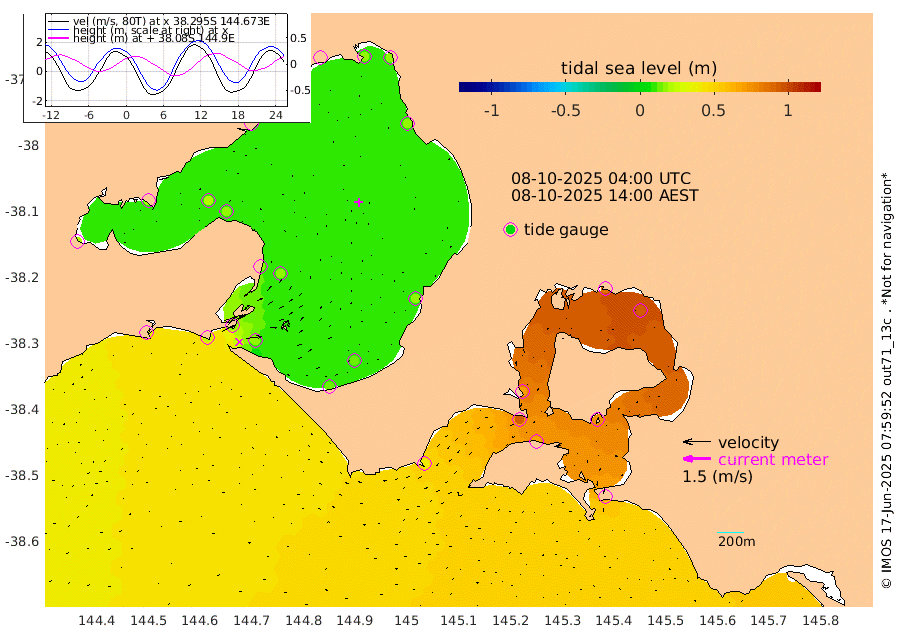 74cm San Remo 73cm Elizabeth Island 91cm Bouchier Channel 86cm Tooradin 67cm Cowes Jetty 69cm Western Port (Stony Point) 90cm Western Port (Sandy Point) 38cm Flinders Jetty 16cm Mornington 16cm Sandringham 14cm Rosebud Jetty 15cm Hovell Pile 17cm South Channel 23cm Point Lonsdale 17cm Queenscliff 16cm West Channel Pile 27cm Barwon Heads 16cm St Leonards 19cm Point Richards (Corio Bay) 20cm Point Richards Channel 19cm Geelong 13cm Werribee 18cm Altona 20cm Wilson Spit 17cm Melbourne (Williamstown) 18cm St Kilda