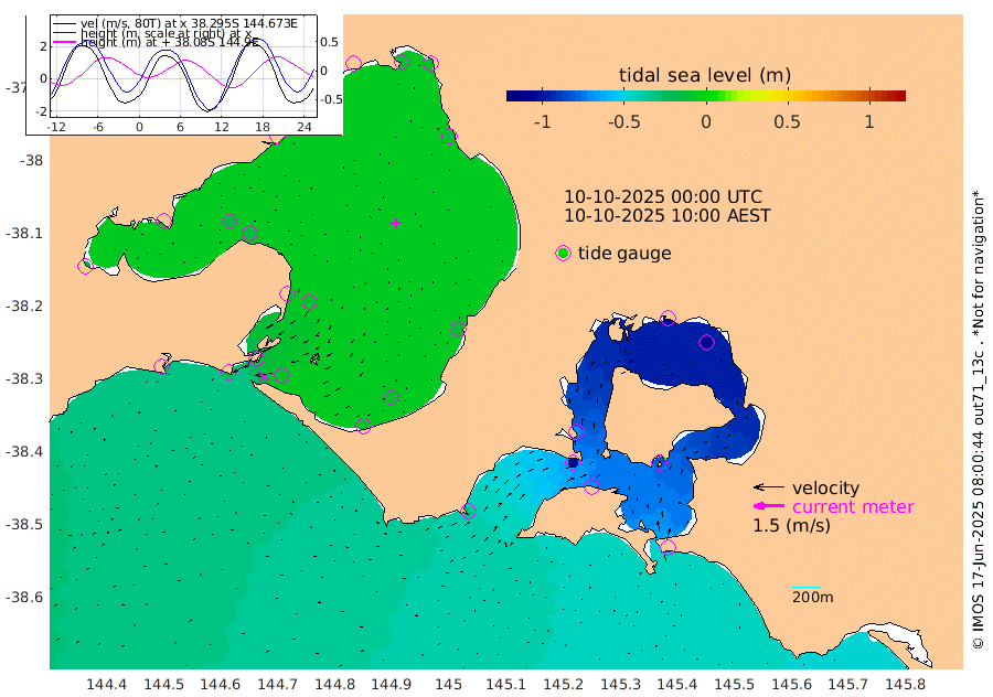 -75cm San Remo -80cm Elizabeth Island -105cm Bouchier Channel -106cm Tooradin -70cm Cowes Jetty -71cm Western Port (Stony Point) -103cm Western Port (Sandy Point) -31cm Flinders Jetty -12cm Mornington -15cm Sandringham -9cm Rosebud Jetty -11cm Hovell Pile -10cm South Channel -14cm Point Lonsdale -8cm Queenscliff -12cm West Channel Pile -19cm Barwon Heads -13cm St Leonards -16cm Point Richards (Corio Bay) -16cm Point Richards Channel -17cm Geelong -10cm Werribee -16cm Altona -17cm Wilson Spit -14cm Melbourne (Williamstown) -15cm St Kilda