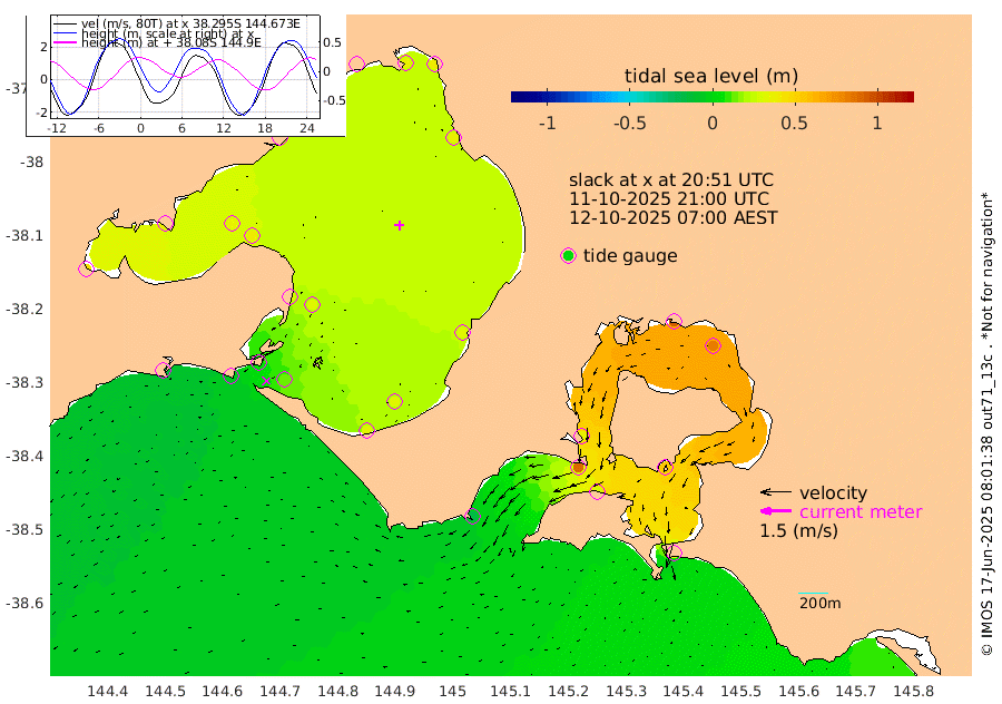 36cm San Remo 55cm Elizabeth Island 81cm Bouchier Channel 93cm Tooradin 28cm Cowes Jetty 37cm Western Port (Stony Point) 87cm Western Port (Sandy Point) -15cm Flinders Jetty 34cm Mornington 37cm Sandringham 32cm Rosebud Jetty 32cm Hovell Pile 14cm South Channel -7cm Point Lonsdale 7cm Queenscliff 32cm West Channel Pile -21cm Barwon Heads 33cm St Leonards 38cm Point Richards (Corio Bay) 36cm Point Richards Channel 42cm Geelong 30cm Werribee 37cm Altona 39cm Wilson Spit 36cm Melbourne (Williamstown) 38cm St Kilda