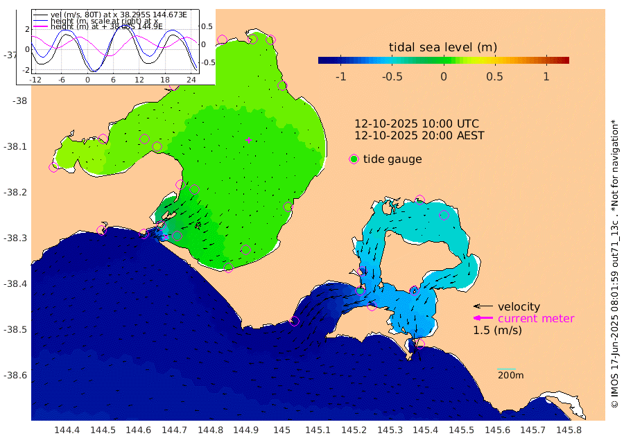-88cm San Remo -68cm Elizabeth Island -43cm Bouchier Channel -22cm Tooradin -94cm Cowes Jetty -86cm Western Port (Stony Point) -34cm Western Port (Sandy Point) -128cm Flinders Jetty 13cm Mornington 14cm Sandringham 10cm Rosebud Jetty 11cm Hovell Pile -27cm South Channel -78cm Point Lonsdale -43cm Queenscliff 10cm West Channel Pile -95cm Barwon Heads 10cm St Leonards 15cm Point Richards (Corio Bay) 14cm Point Richards Channel 20cm Geelong 13cm Werribee 14cm Altona 17cm Wilson Spit 15cm Melbourne (Williamstown) 15cm St Kilda