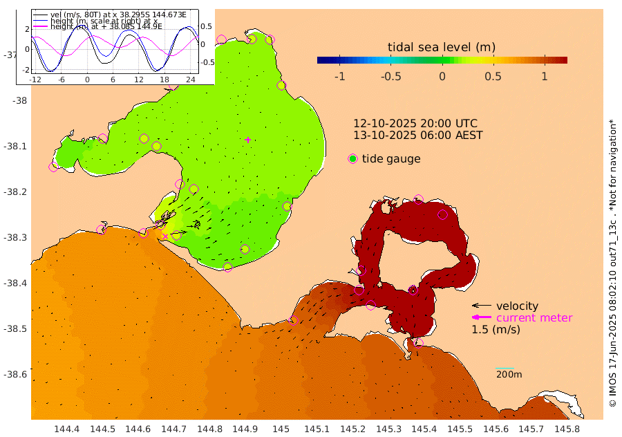 130cm San Remo 138cm Elizabeth Island 164cm Bouchier Channel 162cm Tooradin 122cm Cowes Jetty 128cm Western Port (Stony Point) 161cm Western Port (Sandy Point) 79cm Flinders Jetty 25cm Mornington 28cm Sandringham 23cm Rosebud Jetty 24cm Hovell Pile 30cm South Channel 44cm Point Lonsdale 31cm Queenscliff 25cm West Channel Pile 49cm Barwon Heads 27cm St Leonards 30cm Point Richards (Corio Bay) 30cm Point Richards Channel 31cm Geelong 22cm Werribee 29cm Altona 31cm Wilson Spit 27cm Melbourne (Williamstown) 29cm St Kilda