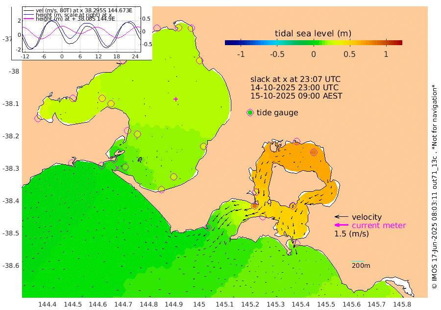 39cm San Remo 54cm Elizabeth Island 80cm Bouchier Channel 86cm Tooradin 31cm Cowes Jetty 41cm Western Port (Stony Point) 83cm Western Port (Sandy Point) -6cm Flinders Jetty 27cm Mornington 29cm Sandringham 25cm Rosebud Jetty 26cm Hovell Pile 13cm South Channel -1cm Point Lonsdale 7cm Queenscliff 26cm West Channel Pile -9cm Barwon Heads 26cm St Leonards 31cm Point Richards (Corio Bay) 30cm Point Richards Channel 34cm Geelong 23cm Werribee 29cm Altona 32cm Wilson Spit 29cm Melbourne (Williamstown) 30cm St Kilda