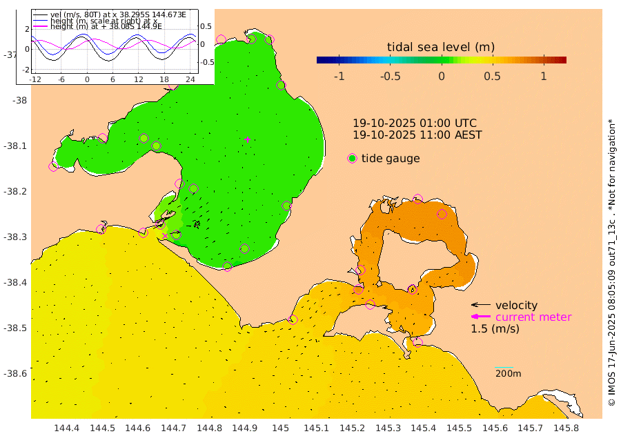 62cm San Remo 60cm Elizabeth Island 75cm Bouchier Channel 69cm Tooradin 53cm Cowes Jetty 60cm Western Port (Stony Point) 72cm Western Port (Sandy Point) 37cm Flinders Jetty 13cm Mornington 13cm Sandringham 12cm Rosebud Jetty 13cm Hovell Pile 16cm South Channel 23cm Point Lonsdale 17cm Queenscliff 13cm West Channel Pile 27cm Barwon Heads 13cm St Leonards 15cm Point Richards (Corio Bay) 16cm Point Richards Channel 15cm Geelong 12cm Werribee 14cm Altona 16cm Wilson Spit 14cm Melbourne (Williamstown) 15cm St Kilda