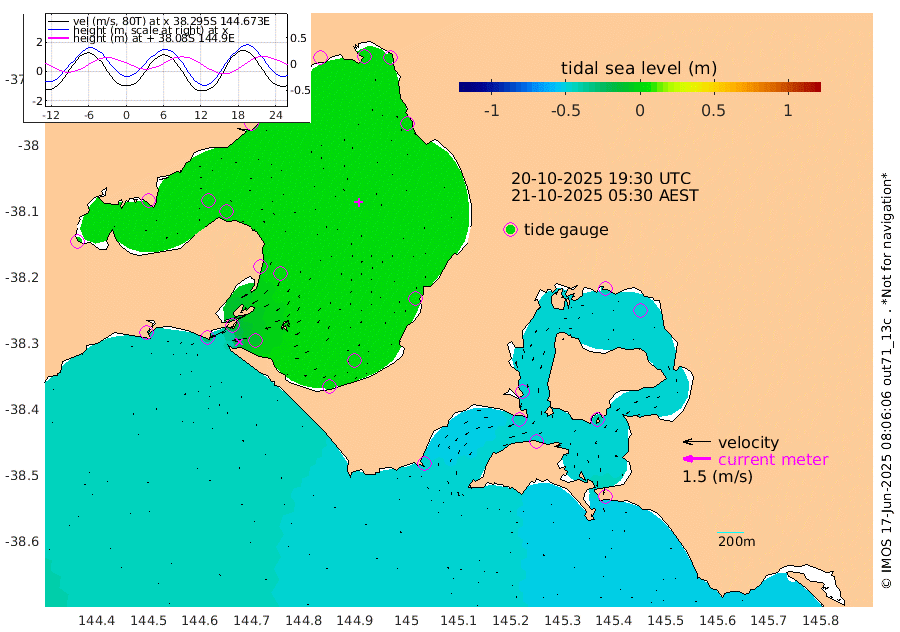 -51cm San Remo -41cm Elizabeth Island -48cm Bouchier Channel -39cm Tooradin -46cm Cowes Jetty -48cm Western Port (Stony Point) -42cm Western Port (Sandy Point) -46cm Flinders Jetty 4cm Mornington 2cm Sandringham 3cm Rosebud Jetty 2cm Hovell Pile -10cm South Channel -27cm Point Lonsdale -14cm Queenscliff 1cm West Channel Pile -37cm Barwon Heads 3cm St Leonards 2cm Point Richards (Corio Bay) 2cm Point Richards Channel 3cm Geelong 2cm Werribee 2cm Altona 3cm Wilson Spit 2cm Melbourne (Williamstown) 2cm St Kilda