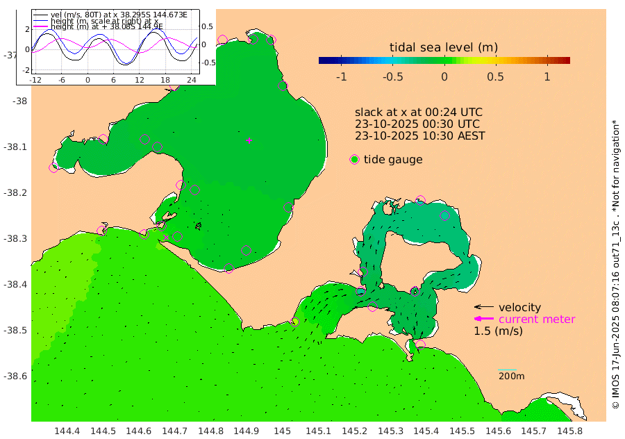-8cm San Remo -16cm Elizabeth Island -36cm Bouchier Channel -44cm Tooradin -8cm Cowes Jetty -8cm Western Port (Stony Point) -35cm Western Port (Sandy Point) 19cm Flinders Jetty -9cm Mornington -11cm Sandringham -7cm Rosebud Jetty -8cm Hovell Pile 3cm South Channel 14cm Point Lonsdale 8cm Queenscliff -8cm West Channel Pile 18cm Barwon Heads -9cm St Leonards -12cm Point Richards (Corio Bay) -11cm Point Richards Channel -15cm Geelong -12cm Werribee -12cm Altona -12cm Wilson Spit -11cm Melbourne (Williamstown) -11cm St Kilda