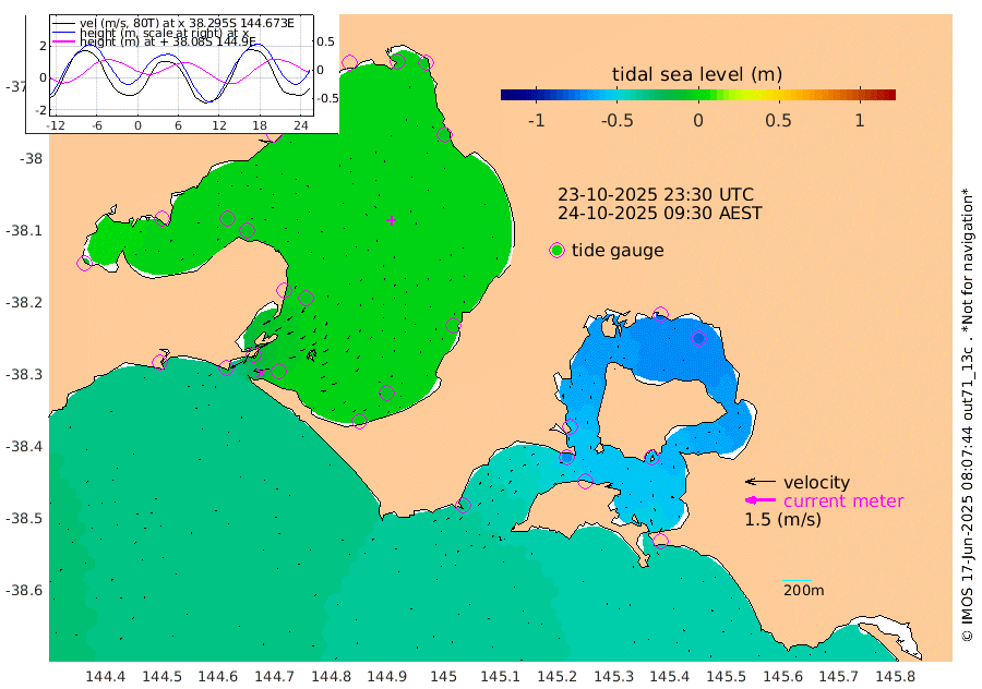 -59cm San Remo -56cm Elizabeth Island -76cm Bouchier Channel -76cm Tooradin -55cm Cowes Jetty -55cm Western Port (Stony Point) -70cm Western Port (Sandy Point) -32cm Flinders Jetty -4cm Mornington -7cm Sandringham -2cm Rosebud Jetty -4cm Hovell Pile -6cm South Channel -15cm Point Lonsdale -6cm Queenscliff -5cm West Channel Pile -21cm Barwon Heads -5cm St Leonards -7cm Point Richards (Corio Bay) -7cm Point Richards Channel -8cm Geelong -7cm Werribee -7cm Altona -7cm Wilson Spit -6cm Melbourne (Williamstown) -6cm St Kilda