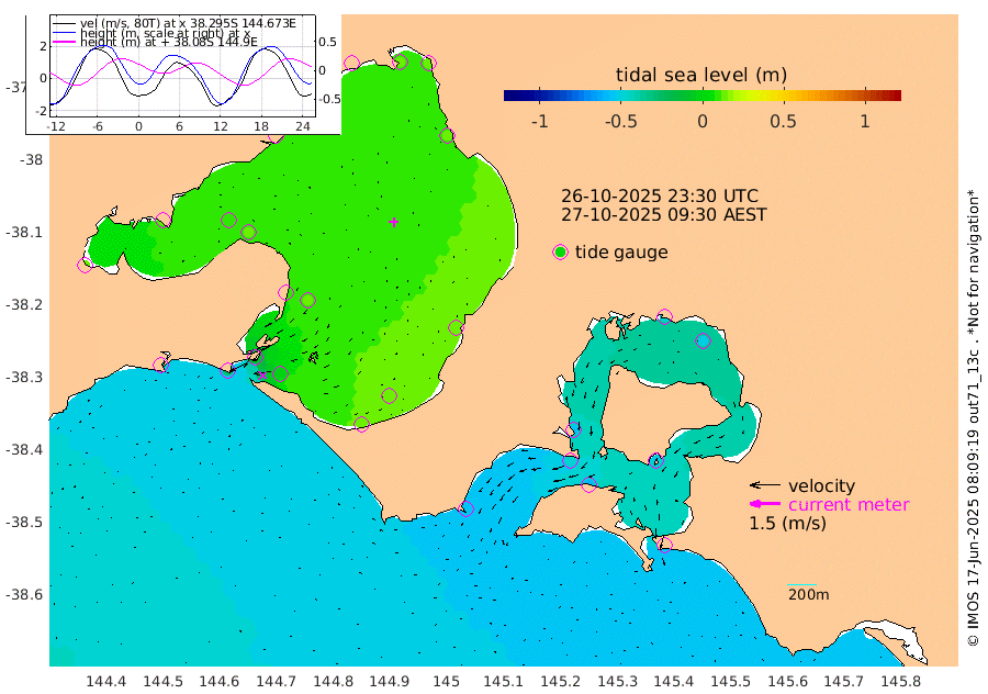 -61cm San Remo -51cm Elizabeth Island -52cm Bouchier Channel -46cm Tooradin -60cm Cowes Jetty -56cm Western Port (Stony Point) -49cm Western Port (Sandy Point) -55cm Flinders Jetty 13cm Mornington 12cm Sandringham 14cm Rosebud Jetty 13cm Hovell Pile -3cm South Channel -27cm Point Lonsdale -9cm Queenscliff 12cm West Channel Pile -43cm Barwon Heads 11cm St Leonards 13cm Point Richards (Corio Bay) 11cm Point Richards Channel 14cm Geelong 14cm Werribee 12cm Altona 12cm Wilson Spit 13cm Melbourne (Williamstown) 13cm St Kilda