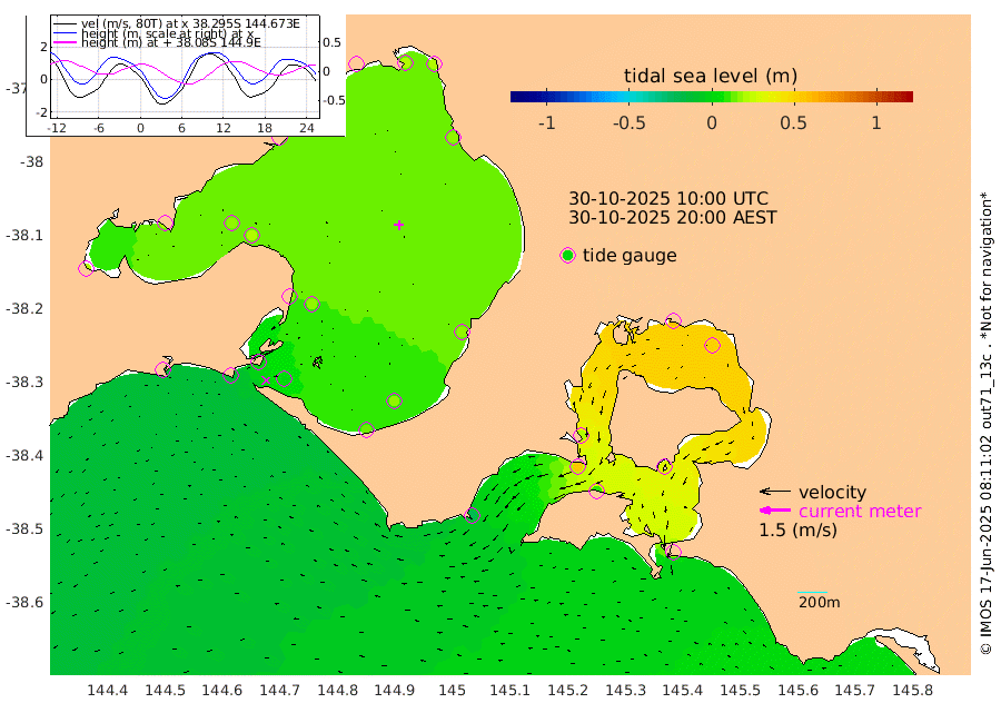 22cm San Remo 31cm Elizabeth Island 50cm Bouchier Channel 60cm Tooradin 11cm Cowes Jetty 21cm Western Port (Stony Point) 56cm Western Port (Sandy Point) -22cm Flinders Jetty 15cm Mornington 17cm Sandringham 15cm Rosebud Jetty 16cm Hovell Pile 3cm South Channel -14cm Point Lonsdale -3cm Queenscliff 16cm West Channel Pile -18cm Barwon Heads 15cm St Leonards 20cm Point Richards (Corio Bay) 18cm Point Richards Channel 22cm Geelong 17cm Werribee 18cm Altona 20cm Wilson Spit 19cm Melbourne (Williamstown) 19cm St Kilda