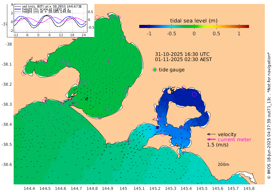 -69cm San Remo -77cm Elizabeth Island -94cm Bouchier Channel -93cm Tooradin -56cm Cowes Jetty -68cm Western Port (Stony Point) -96cm Western Port (Sandy Point) -28cm Flinders Jetty -23cm Mornington -26cm Sandringham -24cm Rosebud Jetty -23cm Hovell Pile -20cm South Channel -17cm Point Lonsdale -19cm Queenscliff -24cm West Channel Pile -15cm Barwon Heads -23cm St Leonards -27cm Point Richards (Corio Bay) -26cm Point Richards Channel -28cm Geelong -19cm Werribee -26cm Altona -27cm Wilson Spit -26cm Melbourne (Williamstown) -26cm St Kilda