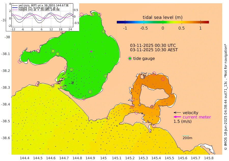 60cm San Remo 62cm Elizabeth Island 77cm Bouchier Channel 73cm Tooradin 50cm Cowes Jetty 58cm Western Port (Stony Point) 77cm Western Port (Sandy Point) 29cm Flinders Jetty 14cm Mornington 14cm Sandringham 13cm Rosebud Jetty 14cm Hovell Pile 14cm South Channel 18cm Point Lonsdale 14cm Queenscliff 14cm West Channel Pile 21cm Barwon Heads 14cm St Leonards 16cm Point Richards (Corio Bay) 17cm Point Richards Channel 17cm Geelong 10cm Werribee 15cm Altona 18cm Wilson Spit 15cm Melbourne (Williamstown) 16cm St Kilda