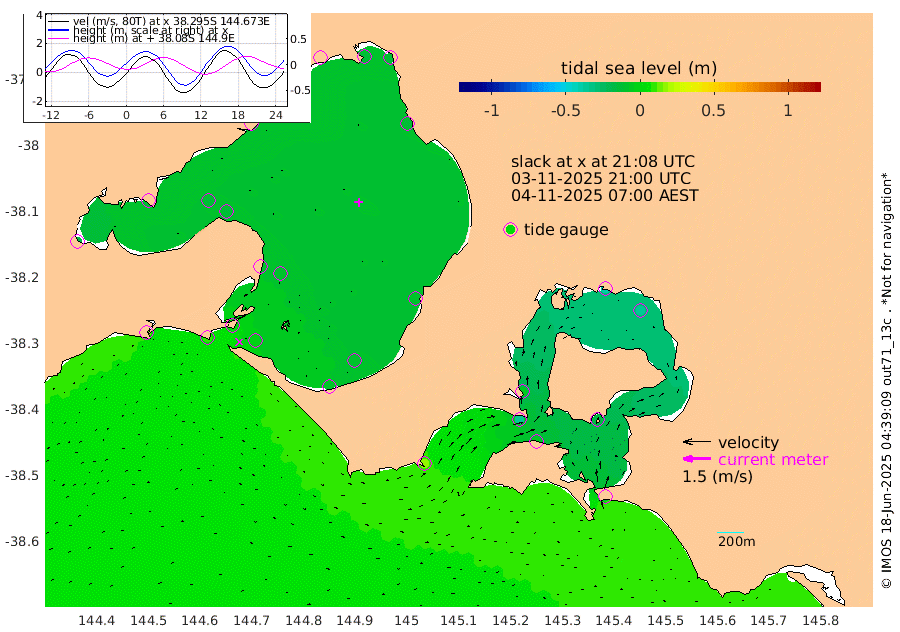-12cm San Remo -16cm Elizabeth Island -34cm Bouchier Channel -38cm Tooradin -6cm Cowes Jetty -7cm Western Port (Stony Point) -35cm Western Port (Sandy Point) 17cm Flinders Jetty -10cm Mornington -14cm Sandringham -10cm Rosebud Jetty -10cm Hovell Pile -1cm South Channel 9cm Point Lonsdale 3cm Queenscliff -11cm West Channel Pile 15cm Barwon Heads -9cm St Leonards -14cm Point Richards (Corio Bay) -12cm Point Richards Channel -16cm Geelong -9cm Werribee -14cm Altona -13cm Wilson Spit -13cm Melbourne (Williamstown) -13cm St Kilda