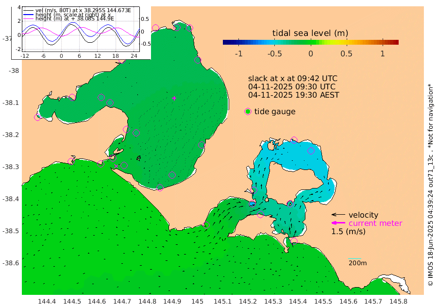 -31cm San Remo -36cm Elizabeth Island -54cm Bouchier Channel -58cm Tooradin -23cm Cowes Jetty -27cm Western Port (Stony Point) -60cm Western Port (Sandy Point) 7cm Flinders Jetty -26cm Mornington -26cm Sandringham -24cm Rosebud Jetty -25cm Hovell Pile -13cm South Channel -1cm Point Lonsdale -9cm Queenscliff -26cm West Channel Pile 7cm Barwon Heads -25cm St Leonards -29cm Point Richards (Corio Bay) -29cm Point Richards Channel -32cm Geelong -25cm Werribee -27cm Altona -30cm Wilson Spit -28cm Melbourne (Williamstown) -29cm St Kilda