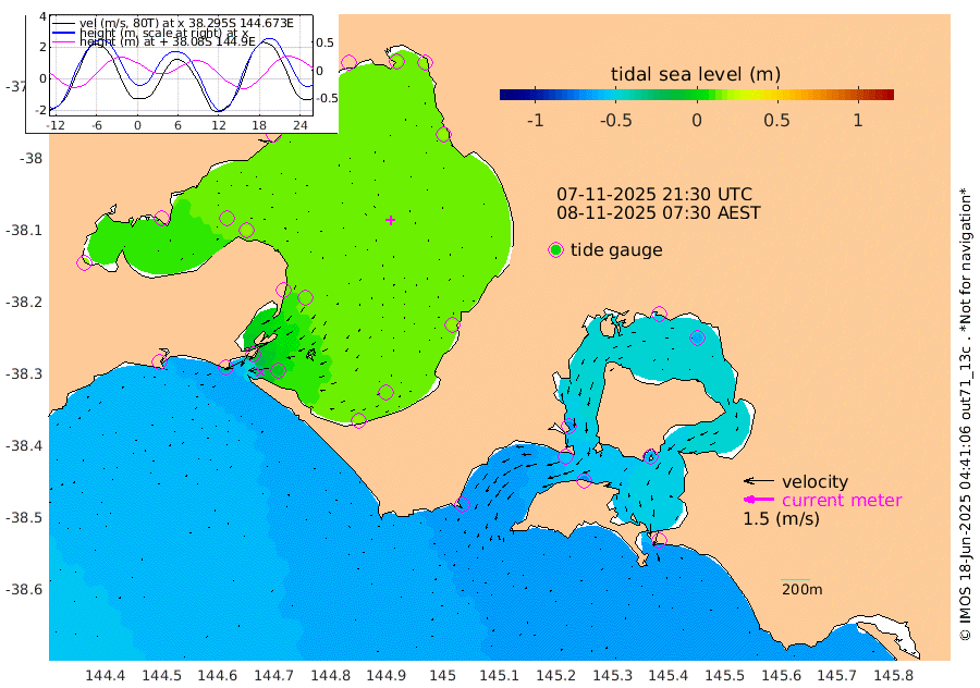 -71cm San Remo -58cm Elizabeth Island -61cm Bouchier Channel -49cm Tooradin -69cm Cowes Jetty -64cm Western Port (Stony Point) -55cm Western Port (Sandy Point) -67cm Flinders Jetty 16cm Mornington 16cm Sandringham 16cm Rosebud Jetty 15cm Hovell Pile -5cm South Channel -32cm Point Lonsdale -11cm Queenscliff 14cm West Channel Pile -52cm Barwon Heads 14cm St Leonards 15cm Point Richards (Corio Bay) 13cm Point Richards Channel 17cm Geelong 15cm Werribee 15cm Altona 16cm Wilson Spit 16cm Melbourne (Williamstown) 16cm St Kilda
