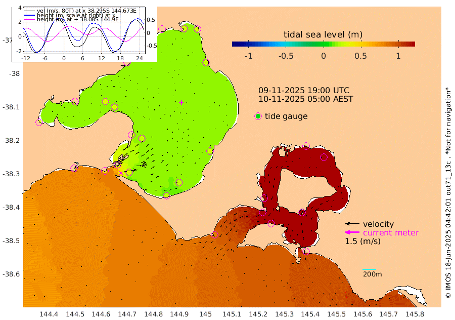 130cm San Remo 137cm Elizabeth Island 163cm Bouchier Channel 160cm Tooradin 123cm Cowes Jetty 128cm Western Port (Stony Point) 160cm Western Port (Sandy Point) 80cm Flinders Jetty 27cm Mornington 29cm Sandringham 25cm Rosebud Jetty 26cm Hovell Pile 32cm South Channel 48cm Point Lonsdale 34cm Queenscliff 27cm West Channel Pile 54cm Barwon Heads 29cm St Leonards 32cm Point Richards (Corio Bay) 32cm Point Richards Channel 33cm Geelong 23cm Werribee 31cm Altona 33cm Wilson Spit 29cm Melbourne (Williamstown) 31cm St Kilda