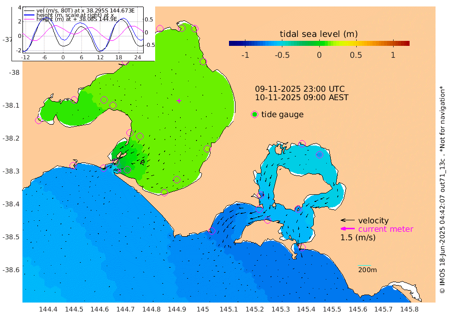 -79cm San Remo -65cm Elizabeth Island -66cm Bouchier Channel -56cm Tooradin -77cm Cowes Jetty -72cm Western Port (Stony Point) -60cm Western Port (Sandy Point) -74cm Flinders Jetty 16cm Mornington 17cm Sandringham 16cm Rosebud Jetty 15cm Hovell Pile -6cm South Channel -36cm Point Lonsdale -13cm Queenscliff 14cm West Channel Pile -57cm Barwon Heads 13cm St Leonards 15cm Point Richards (Corio Bay) 13cm Point Richards Channel 18cm Geelong 14cm Werribee 15cm Altona 15cm Wilson Spit 16cm Melbourne (Williamstown) 15cm St Kilda