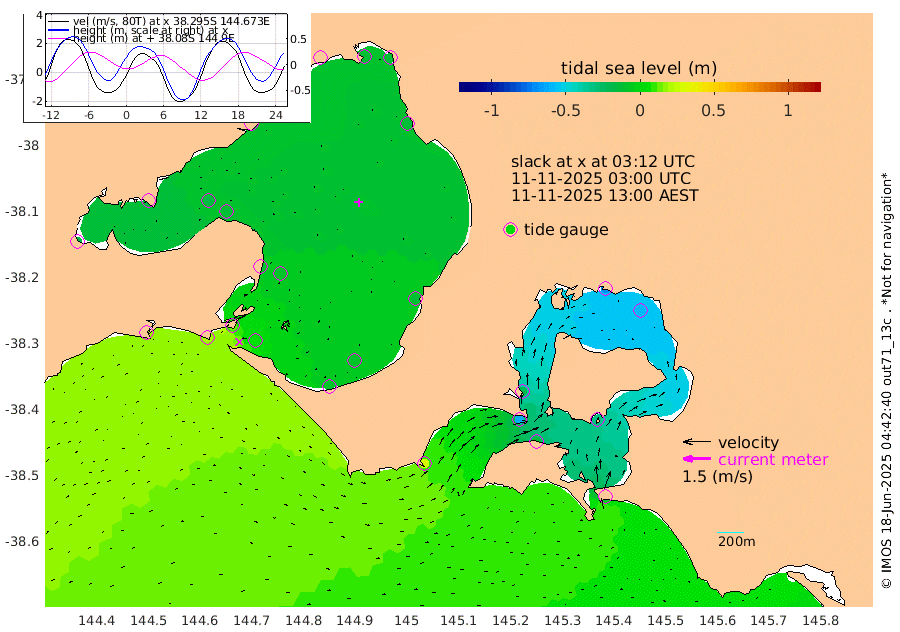 -19cm San Remo -30cm Elizabeth Island -58cm Bouchier Channel -69cm Tooradin -11cm Cowes Jetty -19cm Western Port (Stony Point) -62cm Western Port (Sandy Point) 28cm Flinders Jetty -12cm Mornington -12cm Sandringham -8cm Rosebud Jetty -10cm Hovell Pile 5cm South Channel 20cm Point Lonsdale 13cm Queenscliff -10cm West Channel Pile 20cm Barwon Heads -12cm St Leonards -15cm Point Richards (Corio Bay) -16cm Point Richards Channel -18cm Geelong -10cm Werribee -14cm Altona -18cm Wilson Spit -14cm Melbourne (Williamstown) -14cm St Kilda
