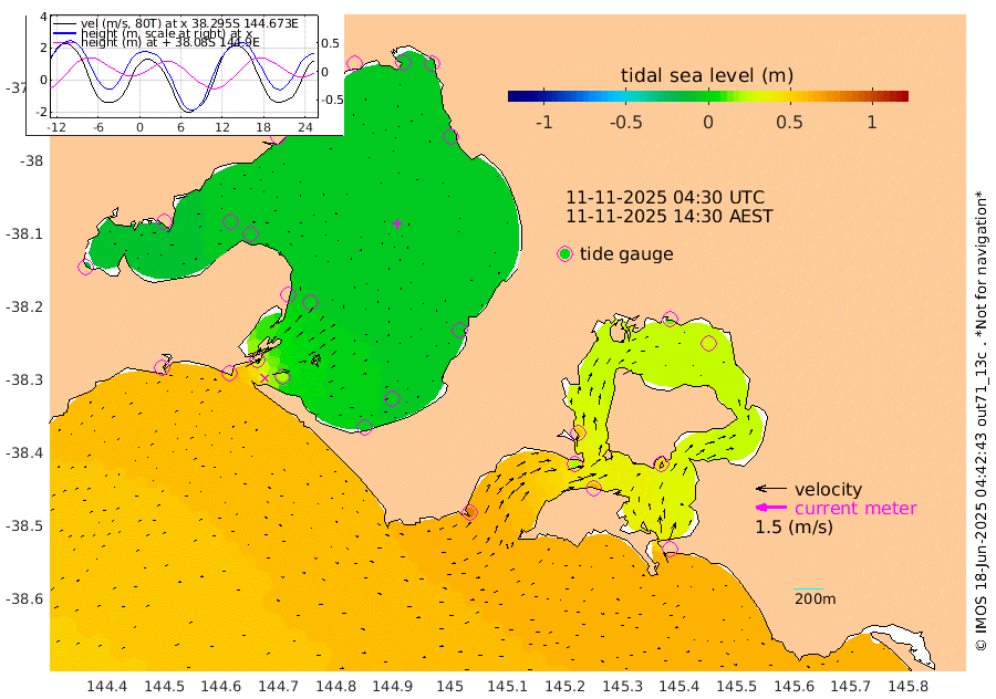 59cm San Remo 46cm Elizabeth Island 27cm Bouchier Channel 13cm Tooradin 61cm Cowes Jetty 55cm Western Port (Stony Point) 21cm Western Port (Sandy Point) 82cm Flinders Jetty -5cm Mornington -4cm Sandringham -2cm Rosebud Jetty -3cm Hovell Pile 20cm South Channel 48cm Point Lonsdale 30cm Queenscliff -2cm West Channel Pile 56cm Barwon Heads -3cm St Leonards -6cm Point Richards (Corio Bay) -6cm Point Richards Channel -9cm Geelong -3cm Werribee -5cm Altona -8cm Wilson Spit -6cm Melbourne (Williamstown) -6cm St Kilda