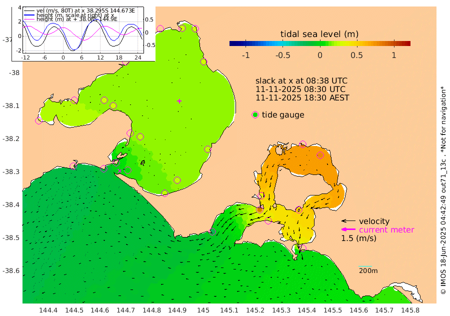 40cm San Remo 55cm Elizabeth Island 78cm Bouchier Channel 89cm Tooradin 27cm Cowes Jetty 37cm Western Port (Stony Point) 86cm Western Port (Sandy Point) -19cm Flinders Jetty 26cm Mornington 28cm Sandringham 25cm Rosebud Jetty 24cm Hovell Pile 6cm South Channel -16cm Point Lonsdale -1cm Queenscliff 25cm West Channel Pile -24cm Barwon Heads 25cm St Leonards 30cm Point Richards (Corio Bay) 29cm Point Richards Channel 33cm Geelong 24cm Werribee 28cm Altona 31cm Wilson Spit 28cm Melbourne (Williamstown) 29cm St Kilda