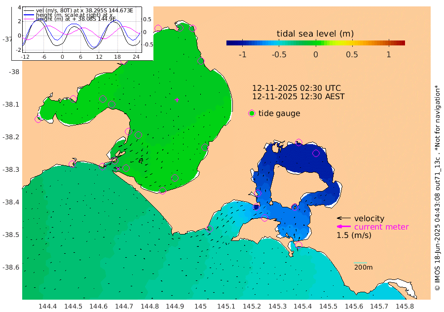 -73cm San Remo -76cm Elizabeth Island -98cm Bouchier Channel -102cm Tooradin -64cm Cowes Jetty -71cm Western Port (Stony Point) -99cm Western Port (Sandy Point) -30cm Flinders Jetty -9cm Mornington -9cm Sandringham -7cm Rosebud Jetty -8cm Hovell Pile -7cm South Channel -12cm Point Lonsdale -6cm Queenscliff -9cm West Channel Pile -21cm Barwon Heads -11cm St Leonards -12cm Point Richards (Corio Bay) -13cm Point Richards Channel -13cm Geelong -9cm Werribee -11cm Altona -15cm Wilson Spit -10cm Melbourne (Williamstown) -12cm St Kilda