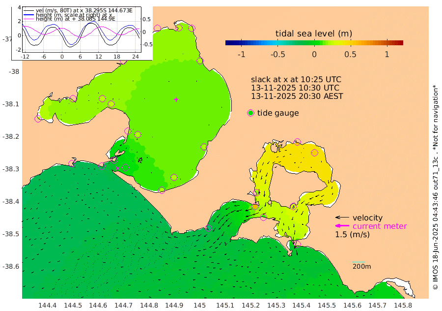 21cm San Remo 34cm Elizabeth Island 52cm Bouchier Channel 62cm Tooradin 9cm Cowes Jetty 18cm Western Port (Stony Point) 60cm Western Port (Sandy Point) -26cm Flinders Jetty 20cm Mornington 22cm Sandringham 20cm Rosebud Jetty 19cm Hovell Pile 2cm South Channel -18cm Point Lonsdale -5cm Queenscliff 19cm West Channel Pile -26cm Barwon Heads 20cm St Leonards 24cm Point Richards (Corio Bay) 23cm Point Richards Channel 26cm Geelong 19cm Werribee 22cm Altona 25cm Wilson Spit 23cm Melbourne (Williamstown) 23cm St Kilda