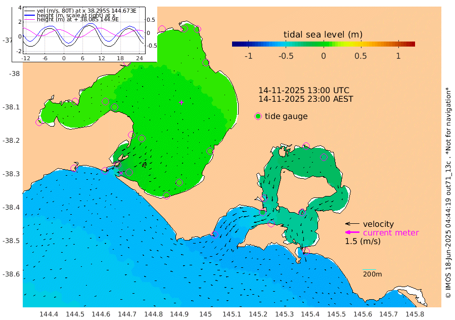 -45cm San Remo -35cm Elizabeth Island -27cm Bouchier Channel -15cm Tooradin -50cm Cowes Jetty -48cm Western Port (Stony Point) -16cm Western Port (Sandy Point) -67cm Flinders Jetty 9cm Mornington 10cm Sandringham 9cm Rosebud Jetty 8cm Hovell Pile -12cm South Channel -39cm Point Lonsdale -21cm Queenscliff 8cm West Channel Pile -51cm Barwon Heads 8cm St Leonards 11cm Point Richards (Corio Bay) 10cm Point Richards Channel 14cm Geelong 8cm Werribee 10cm Altona 12cm Wilson Spit 11cm Melbourne (Williamstown) 10cm St Kilda