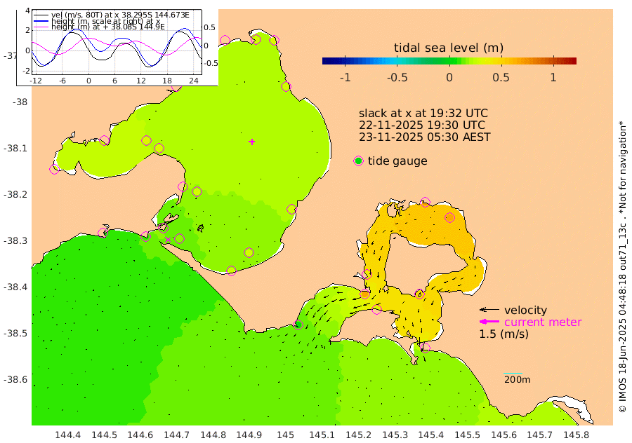 35cm San Remo 45cm Elizabeth Island 65cm Bouchier Channel 71cm Tooradin 34cm Cowes Jetty 39cm Western Port (Stony Point) 64cm Western Port (Sandy Point) 7cm Flinders Jetty 28cm Mornington 29cm Sandringham 26cm Rosebud Jetty 27cm Hovell Pile 17cm South Channel 9cm Point Lonsdale 14cm Queenscliff 27cm West Channel Pile 1cm Barwon Heads 28cm St Leonards 31cm Point Richards (Corio Bay) 30cm Point Richards Channel 33cm Geelong 29cm Werribee 30cm Altona 32cm Wilson Spit 30cm Melbourne (Williamstown) 31cm St Kilda
