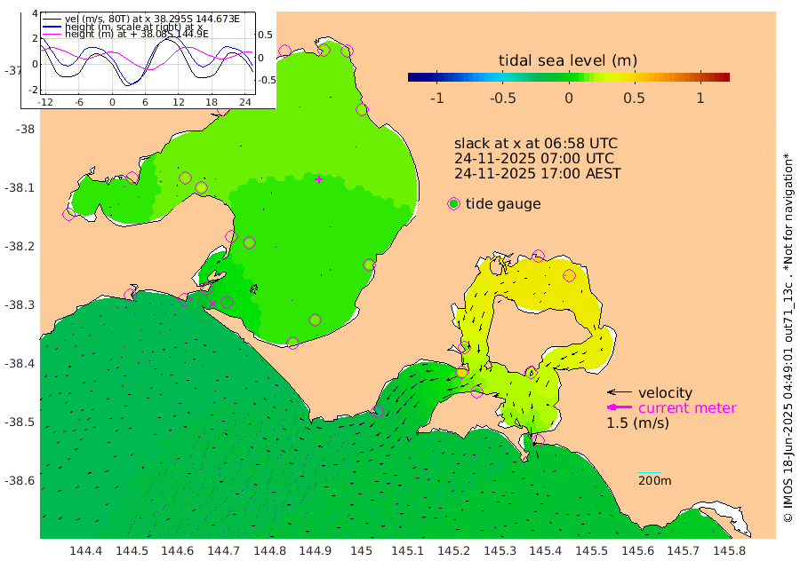 14cm San Remo 23cm Elizabeth Island 46cm Bouchier Channel 56cm Tooradin 9cm Cowes Jetty 14cm Western Port (Stony Point) 46cm Western Port (Sandy Point) -27cm Flinders Jetty 15cm Mornington 17cm Sandringham 13cm Rosebud Jetty 14cm Hovell Pile 0cm South Channel -19cm Point Lonsdale -6cm Queenscliff 15cm West Channel Pile -25cm Barwon Heads 15cm St Leonards 19cm Point Richards (Corio Bay) 18cm Point Richards Channel 21cm Geelong 18cm Werribee 17cm Altona 19cm Wilson Spit 18cm Melbourne (Williamstown) 19cm St Kilda