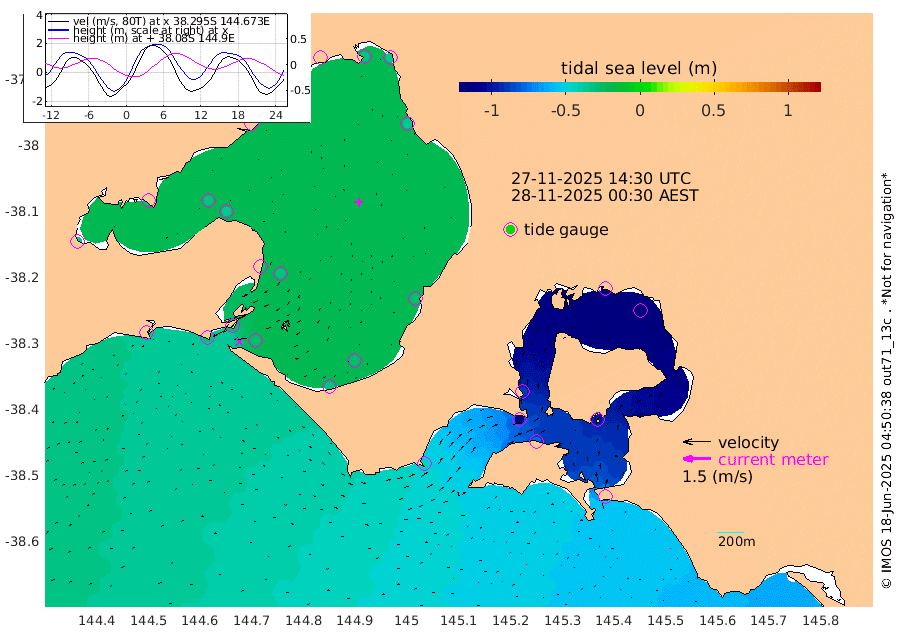 -89cm San Remo -98cm Elizabeth Island -118cm Bouchier Channel -117cm Tooradin -77cm Cowes Jetty -88cm Western Port (Stony Point) -118cm Western Port (Sandy Point) -43cm Flinders Jetty -30cm Mornington -34cm Sandringham -30cm Rosebud Jetty -30cm Hovell Pile -27cm South Channel -26cm Point Lonsdale -26cm Queenscliff -31cm West Channel Pile -23cm Barwon Heads -30cm St Leonards -35cm Point Richards (Corio Bay) -33cm Point Richards Channel -35cm Geelong -27cm Werribee -34cm Altona -34cm Wilson Spit -33cm Melbourne (Williamstown) -34cm St Kilda