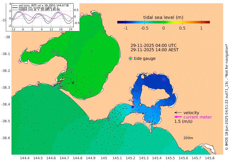 -61cm San Remo -64cm Elizabeth Island -82cm Bouchier Channel -86cm Tooradin -51cm Cowes Jetty -60cm Western Port (Stony Point) -87cm Western Port (Sandy Point) -22cm Flinders Jetty -13cm Mornington -13cm Sandringham -11cm Rosebud Jetty -13cm Hovell Pile -11cm South Channel -12cm Point Lonsdale -9cm Queenscliff -13cm West Channel Pile -17cm Barwon Heads -15cm St Leonards -16cm Point Richards (Corio Bay) -17cm Point Richards Channel -18cm Geelong -12cm Werribee -15cm Altona -19cm Wilson Spit -15cm Melbourne (Williamstown) -16cm St Kilda