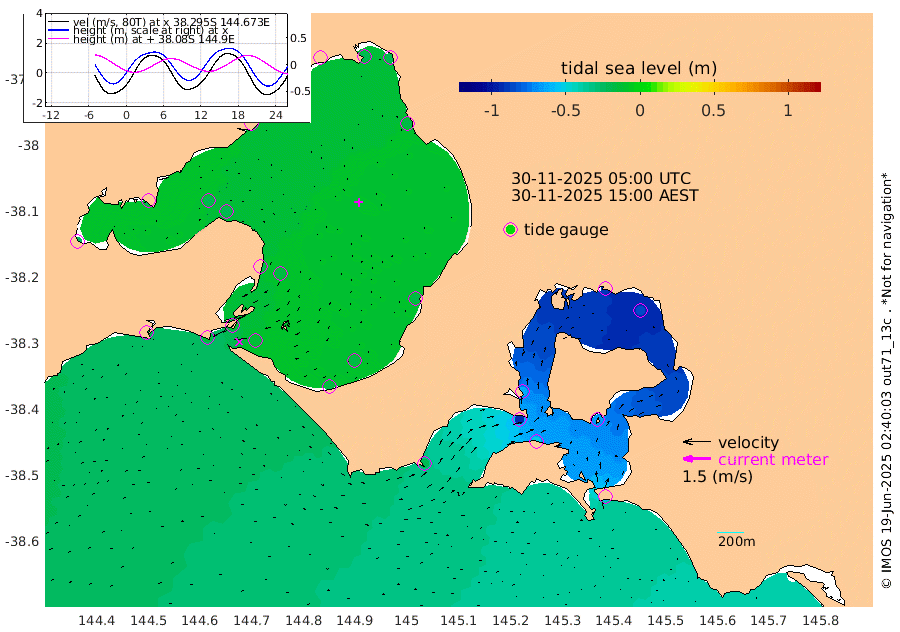 -63cm San Remo -66cm Elizabeth Island -84cm Bouchier Channel -87cm Tooradin -52cm Cowes Jetty -61cm Western Port (Stony Point) -90cm Western Port (Sandy Point) -22cm Flinders Jetty -18cm Mornington -18cm Sandringham -17cm Rosebud Jetty -18cm Hovell Pile -15cm South Channel -14cm Point Lonsdale -13cm Queenscliff -19cm West Channel Pile -17cm Barwon Heads -19cm St Leonards -22cm Point Richards (Corio Bay) -22cm Point Richards Channel -23cm Geelong -16cm Werribee -20cm Altona -24cm Wilson Spit -20cm Melbourne (Williamstown) -21cm St Kilda
