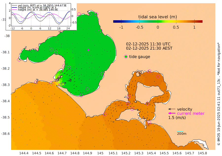 92cm San Remo 86cm Elizabeth Island 88cm Bouchier Channel 80cm Tooradin 82cm Cowes Jetty 86cm Western Port (Stony Point) 88cm Western Port (Sandy Point) 76cm Flinders Jetty -3cm Mornington -1cm Sandringham -1cm Rosebud Jetty -1cm Hovell Pile 17cm South Channel 41cm Point Lonsdale 22cm Queenscliff 0cm West Channel Pile 53cm Barwon Heads 0cm St Leonards 0cm Point Richards (Corio Bay) 0cm Point Richards Channel -1cm Geelong -5cm Werribee 0cm Altona -1cm Wilson Spit -1cm Melbourne (Williamstown) -1cm St Kilda