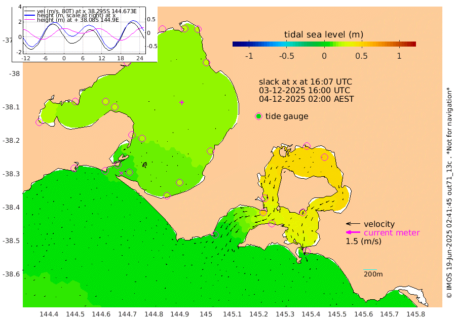 29cm San Remo 34cm Elizabeth Island 49cm Bouchier Channel 55cm Tooradin 23cm Cowes Jetty 25cm Western Port (Stony Point) 55cm Western Port (Sandy Point) -1cm Flinders Jetty 21cm Mornington 23cm Sandringham 21cm Rosebud Jetty 21cm Hovell Pile 13cm South Channel 5cm Point Lonsdale 9cm Queenscliff 22cm West Channel Pile -2cm Barwon Heads 21cm St Leonards 25cm Point Richards (Corio Bay) 23cm Point Richards Channel 27cm Geelong 19cm Werribee 24cm Altona 25cm Wilson Spit 24cm Melbourne (Williamstown) 24cm St Kilda