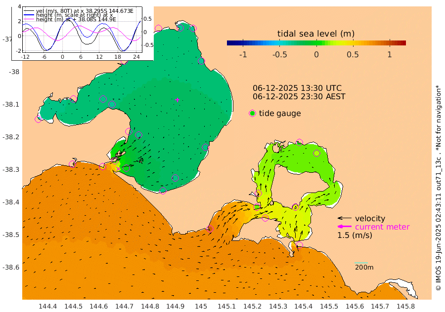 56cm San Remo 35cm Elizabeth Island 21cm Bouchier Channel 5cm Tooradin 61cm Cowes Jetty 53cm Western Port (Stony Point) 12cm Western Port (Sandy Point) 90cm Flinders Jetty -34cm Mornington -35cm Sandringham -33cm Rosebud Jetty -31cm Hovell Pile 3cm South Channel 48cm Point Lonsdale 15cm Queenscliff -31cm West Channel Pile 75cm Barwon Heads -30cm St Leonards -35cm Point Richards (Corio Bay) -33cm Point Richards Channel -39cm Geelong -32cm Werribee -34cm Altona -36cm Wilson Spit -35cm Melbourne (Williamstown) -36cm St Kilda