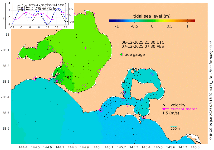 -65cm San Remo -54cm Elizabeth Island -61cm Bouchier Channel -54cm Tooradin -60cm Cowes Jetty -58cm Western Port (Stony Point) -57cm Western Port (Sandy Point) -52cm Flinders Jetty 15cm Mornington 15cm Sandringham 16cm Rosebud Jetty 14cm Hovell Pile -1cm South Channel -23cm Point Lonsdale -5cm Queenscliff 13cm West Channel Pile -41cm Barwon Heads 13cm St Leonards 14cm Point Richards (Corio Bay) 12cm Point Richards Channel 15cm Geelong 14cm Werribee 14cm Altona 14cm Wilson Spit 14cm Melbourne (Williamstown) 14cm St Kilda